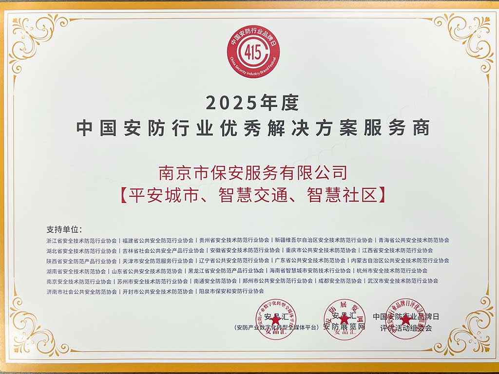 Established in April 1987, Nanjing Security Service Co., Ltd. is a large state-owned security enterprise with a long history of security operation and rich security experience. Now it is a managing director of both? China Security Association and Jiangsu?Security Association, vice president of? Nanjing Security Association, one of the top class security service companies in Jiangsu Province.
